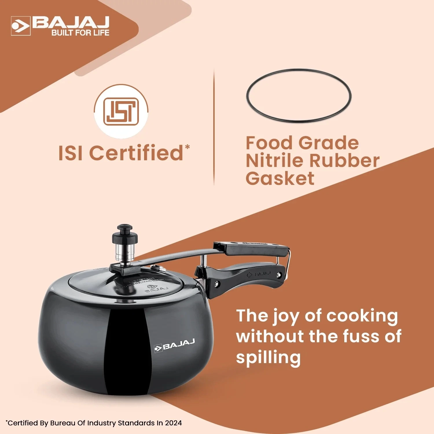 Cook delicious meals with the Bajaj New Shakti Inner Lid Handi Pressure Cooker. Designed in a unique handi shape, it is perfect for preparing biryani, curries, dals, and gravies. The 3-litre capacity makes it suitable for small families, while the hard anodised body ensures durability, scratch resistance, and even heat distribution. The inner lid design provides added safety, and the induction-compatible base makes it versatile for use on both gas stoves and induction cooktops.