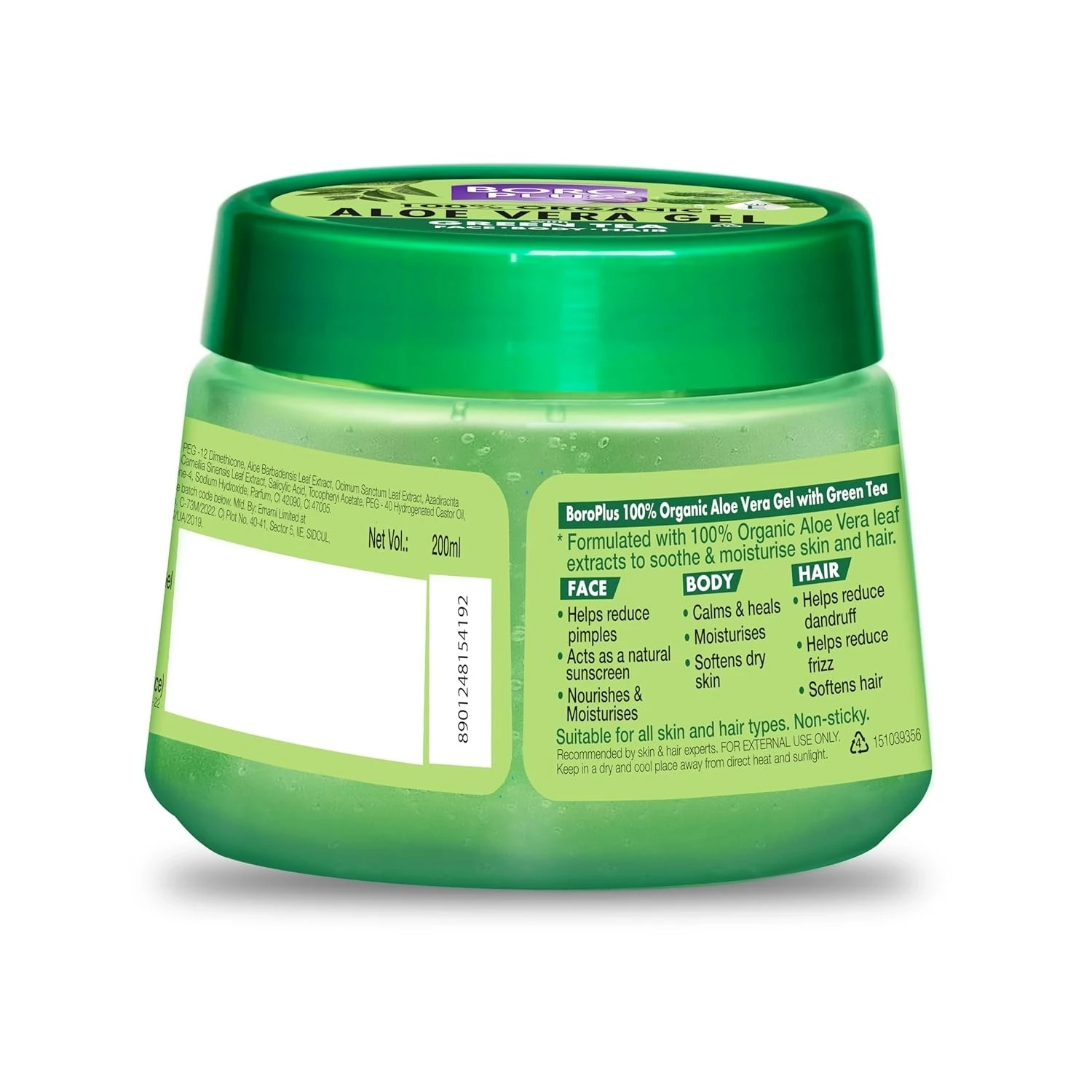 BoroPlus Aloe Vera Gel is a multi-benefit skin care solution enriched with pure Aloe Vera, Green Tea, and Vitamin E. Its lightweight, non-sticky formula hydrates, soothes, and nourishes the skin while protecting it from dryness and environmental damage. Free from parabens and sulphates, it is safe for daily use on face,