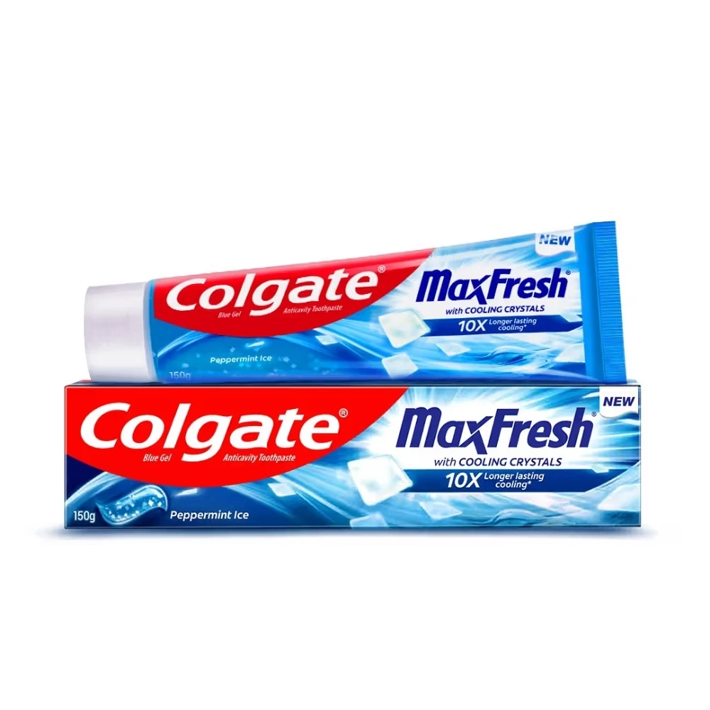 Colgate MaxFresh Cooling Crystals Toothpaste gives you an intense burst of freshness every time you brush. Packed with cooling crystals, it fights germs, removes plaque, and keeps your breath fresh for hours. Its unique formula helps strengthen teeth and maintain oral hygiene, leaving your mouth feeling energized and clean