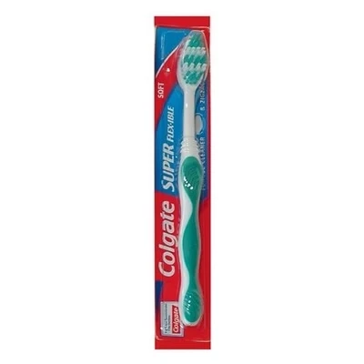 The Colgate Super Flexi Toothbrush is designed with a flexible neck that adapts to the contours of your mouth, making it easier to clean hard-to-reach areas. Its soft, end-rounded bristles gently clean teeth and gums, while the built-in tongue cleaner helps remove odor-causing bacteria for fresher breath. The ergonomic handle provides a firm, comfortable grip, ensuring a superior brushing experience every day.