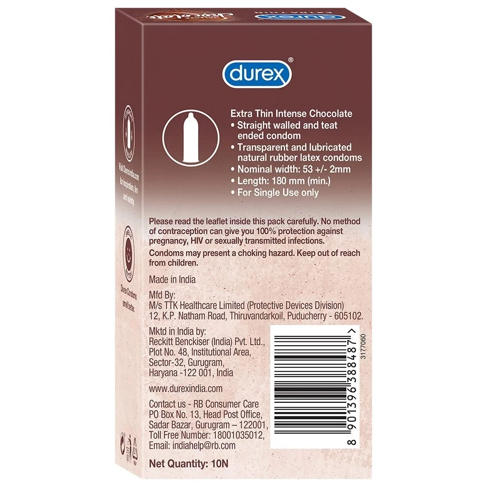 Experience enhanced intimacy with Durex Extra Thin Intense Chocolate Flavoured Condoms. Specially designed to provide greater sensitivity, these extra thin condoms ensure a natural feel while maintaining the trusted Durex protection. The irresistible chocolate flavor adds a fun and exciting twist, making your moments more pleasurable and playful