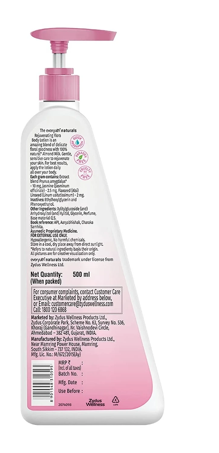 Experience all-day freshness with Everyuth Naturals Rejuvenating Flora Body Lotion. Infused with natural floral extracts and moisturizers, this lotion deeply hydrates the skin while leaving behind a light, refreshing fragrance. Its non-greasy, quick-absorbing formula nourishes from within, giving your skin a soft, supple, and radiant feel throughout the day. Perfect for normal to dry skin and daily use