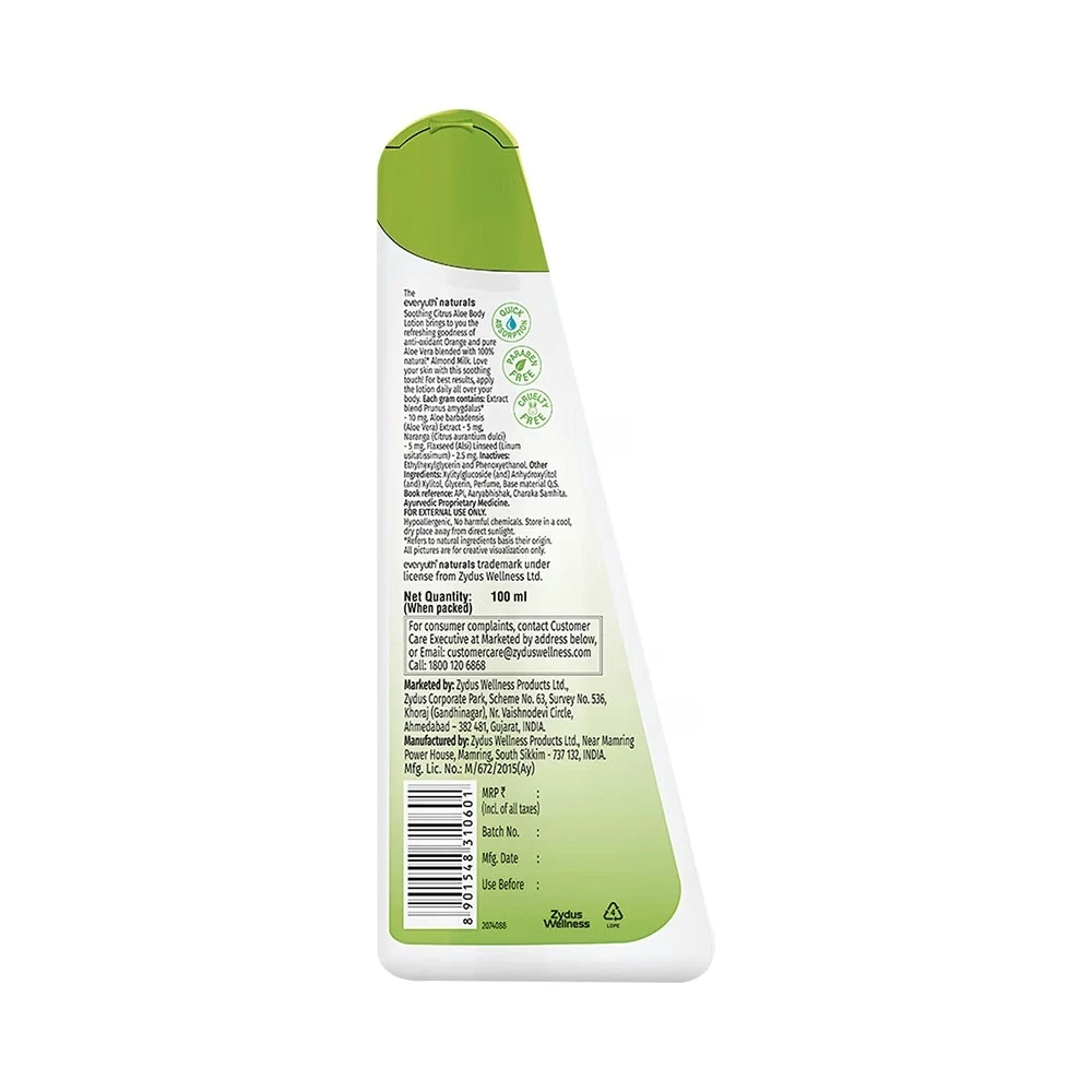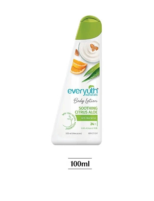 Give your skin a burst of freshness and hydration with Everyuth Naturals Soothing Citrus Aloe Body Lotion. Enriched with the cooling goodness of Aloe Vera and the refreshing touch of Citrus extracts, this lotion nourishes and moisturizes your skin while keeping it soft, smooth, and revitalized. Its lightweight, non-greasy formula absorbs quickly, providing long-lasting hydration and a refreshing fragrance.