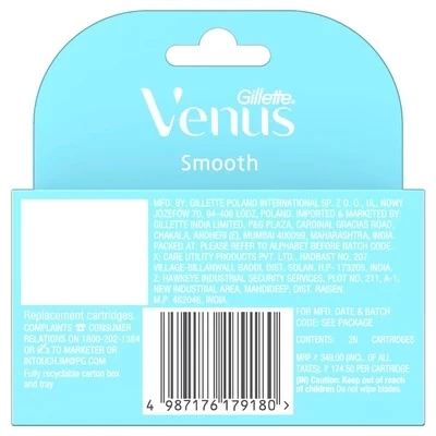 Enjoy silky smooth skin with the Gillette Venus Smooth Razor for Women (2N Pack). Designed with 3 curve-hugging blades, it glides effortlessly over the skin, removing even fine hair for a close shave. The soft protective cushions and ergonomic handle ensure a safe, gentle, and comfortable shaving experience. Perfect for everyday use to keep your skin soft and smooth.