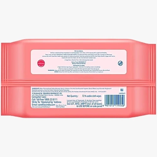 Johnson's Baby Skincare Wipes are specially designed to gently cleanse and protect your baby’s delicate skin. Enriched with moisturizing lotion, these wipes help prevent dryness and keep skin soft, smooth, and healthy. Free from alcohol, parabens, and harsh chemicals, they are as mild as pure water and safe for everyday use. Perfect for diaper changes, mealtime cleanups, and on-the-go freshness.