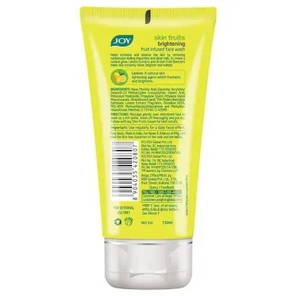 Joy Skin Fruits Lemon Brightening Face Wash is enriched with the natural goodness of Lemon extracts, known for their skin-cleansing and brightening properties. It gently removes dirt, oil, and impurities, leaving your skin feeling fresh, clean, and radiant. The refreshing citrus formula helps reduce dullness and restores your skin’s natural glow while maintaining softness and smoothness.