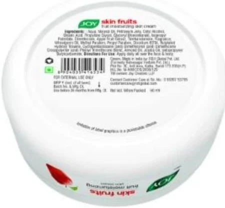 Joy Skin Fruits Moisturizer is enriched with the natural goodness of fruit extracts that help restore skin moisture and provide essential nourishment. Its light, creamy texture spreads easily, absorbs quickly, and keeps skin soft, smooth, and hydrated throughout the day. Rich in vitamins and antioxidants, it rejuvenates dull skin, leaving it fresh, radiant, and healthy-looking. Perfect for daily use and suitable for all skin types.