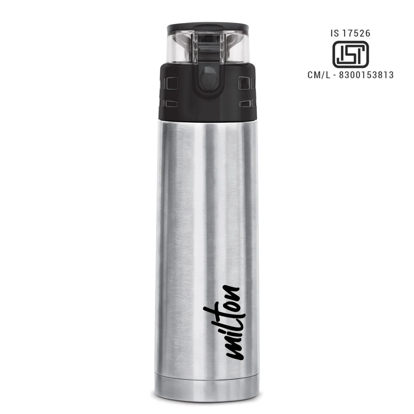 Experience hydration at its best with the Milton Atlantis Thermosteel Water Bottle (500 ml). Built from premium double-walled stainless steel with an inner copper coating, it keeps your hot drinks hot and cold drinks cold for hours. The leak-proof, lockable lid prevents spills, while the sleek design and ergonomic grip make it ideal for daily use—whether at work, at the gym, or on travel. Durable, rust-resistant, BPA-free, and backed by a 1-year warranty.