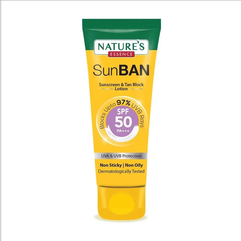 Nature’s Sun Ban Sunscreen & Tan Block Lotion is an advanced sun protection formula that shields the skin against harmful UVA/UVB rays while preventing tanning. Enriched with natural ingredients, it nourishes the skin, maintains hydration, and protects it from sunburn and premature aging. Its lightweight, non-greasy texture makes it suitable for daily use.
