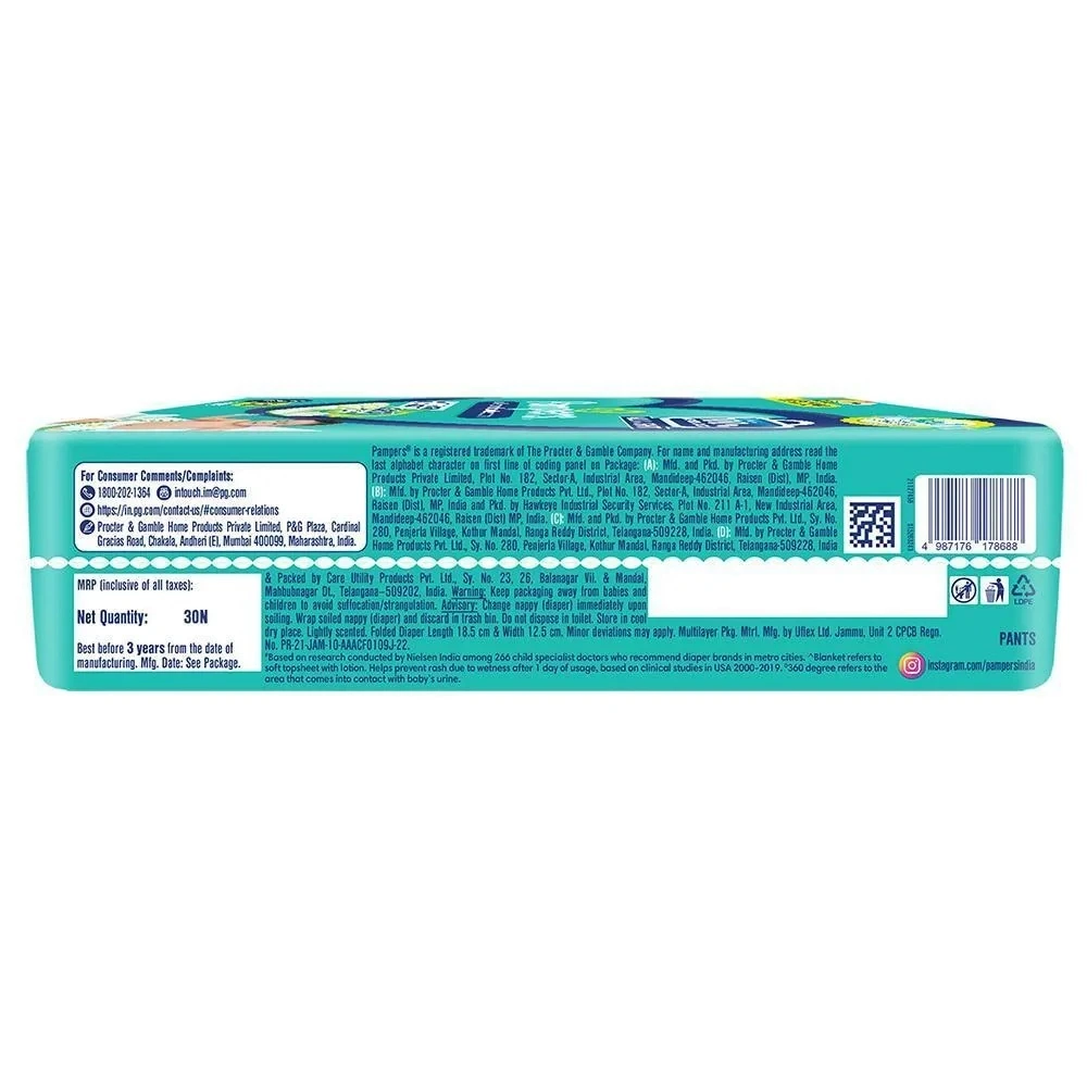 Pampers brings you a thoughtfully designed pant diaper made from ultra-soft, cotton-like materials that adapt to your baby’s movements. Featuring a revolutionary Anti-Rash Blanket enriched with Aloe Vera lotion,