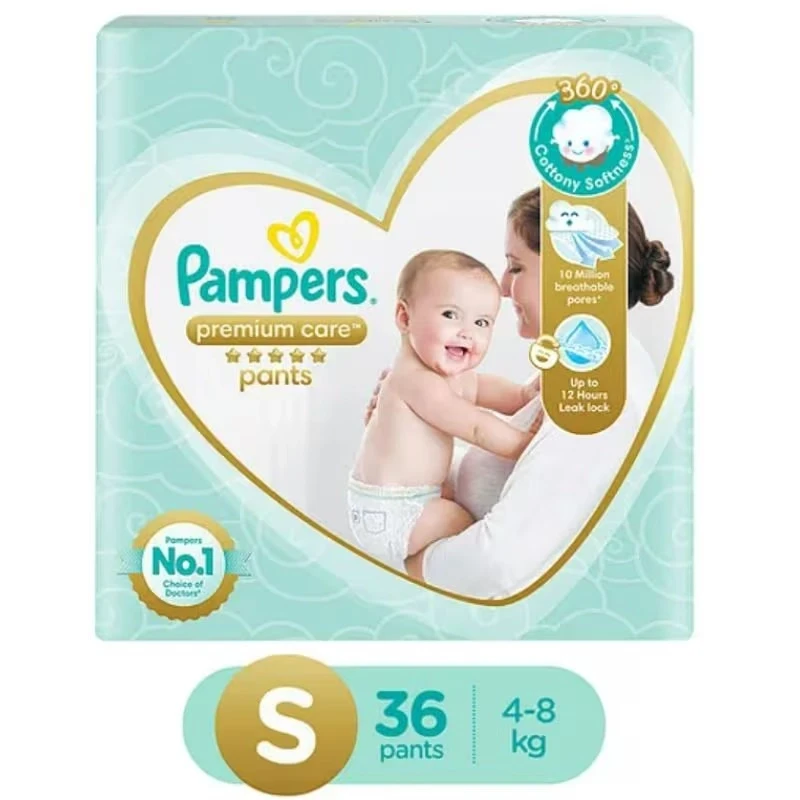 Give your little one the gentlest care with Pampers Premium Care Pants, Small Size (4–8 kg), 36 count. Designed with your baby’s delicate skin in mind, these diapers provide 5 Star Skin Protection with ultra-soft, cotton-like material that is gentle and breathable. The advanced 3 absorbing channels and Magic Gel technology lock in wetness for up to 12 hours of dryness, preventing leaks and discomfort.