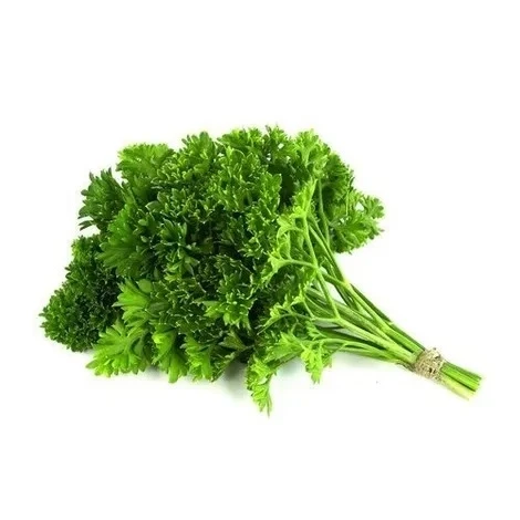 Coriander leaves, also known as cilantro, Aromatic green leaves that are largely used to flavour and garnish food. When added to heated dishes, the leaves lose their flavour, and are often used raw or garnished just before serving.