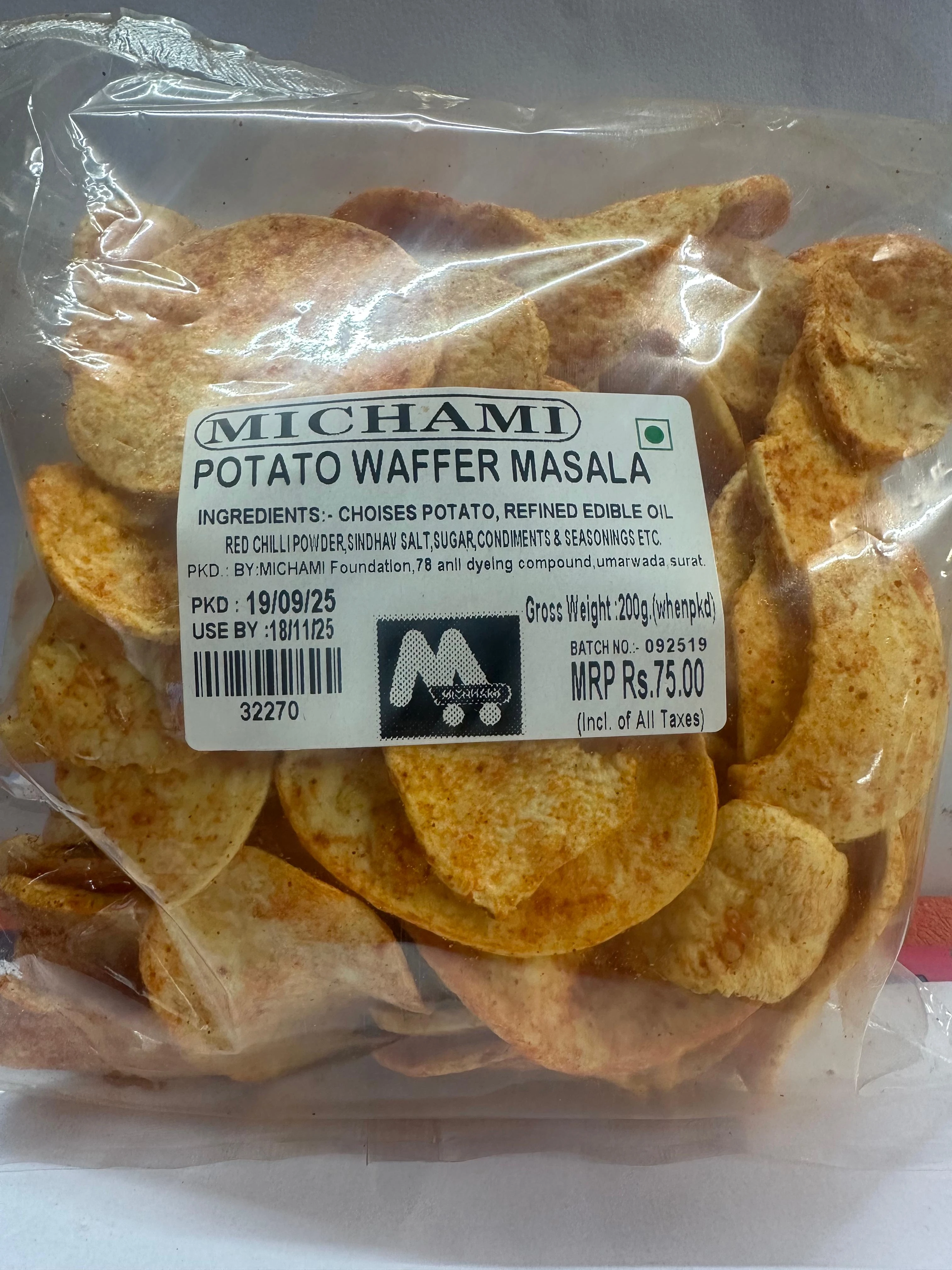 Ingredients: Potato Slices, Refined Edible Oil, Masala Spice Mix, Salt, Condiments & Seasonings Net Weight: 200g