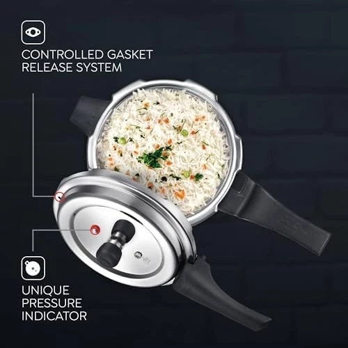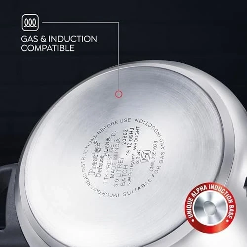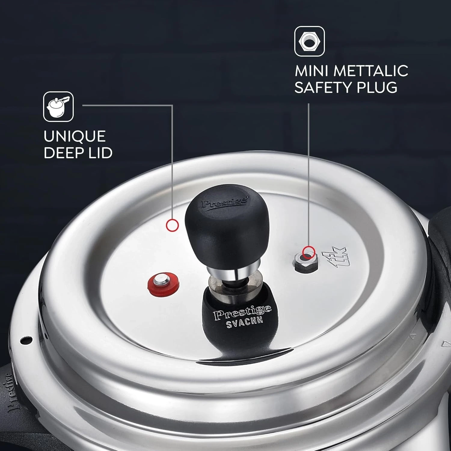 The Prestige Svachh Deluxe Alpha Stainless Steel Pressure Cooker combines strength, safety, and modern design for effortless cooking. With a 3.5-litre capacity, it is ideal for medium-sized families. Made from premium stainless steel, it ensures durability, hygiene, and long-lasting performance. The outer lid design makes handling convenient, while the deep Svachh lid helps control spills and keeps the kitchen clean. Its induction-compatible base allows versatile cooking on both induction and gas stoves.