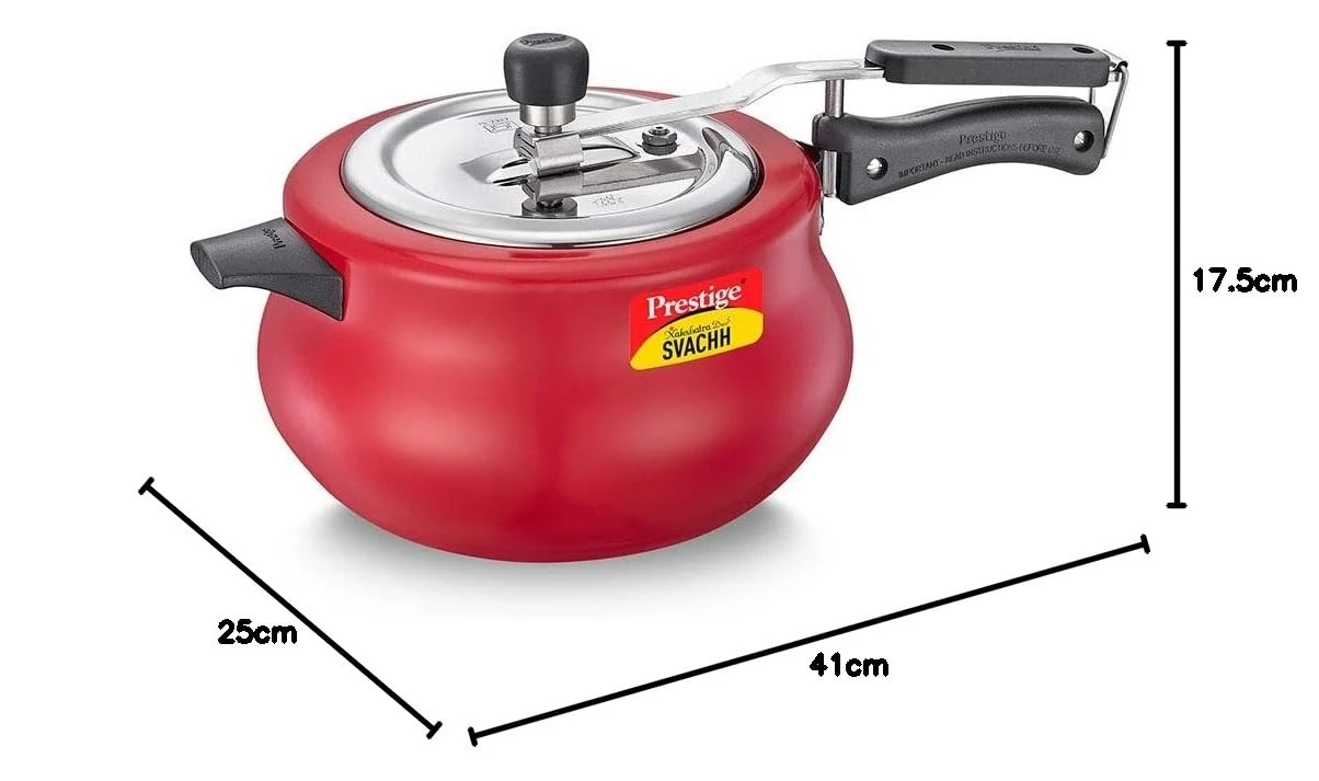 The Prestige Svachh Nakshatra Duo Handi Pressure Cooker is a perfect blend of style, safety, and convenience. With a 5-litre capacity, it is ideal for medium to large families. Made from high-quality aluminium, it ensures faster and even cooking while being lightweight and durable. The handi shape enhances flavours, making it great for biryani, curries, and gravies. Its inner lid design ensures extra safety, while the deep Svachh lid prevents spills, keeping your kitchen clean. The vibrant red finish adds elegance to your cookware.