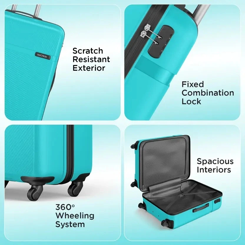 Travel in style with the Safari Magnum Fury 66 cm Medium Check-in Suitcase in a vibrant teal hue. Crafted from durable polypropylene, this hard-shell suitcase offers a perfect blend of strength and lightweight design. The 4-wheel spinner system ensures effortless 360° maneuverability, making it ideal for both business and leisure travel. With a generous capacity of 62 liters, it provides ample space for your belongings while keeping them secure.