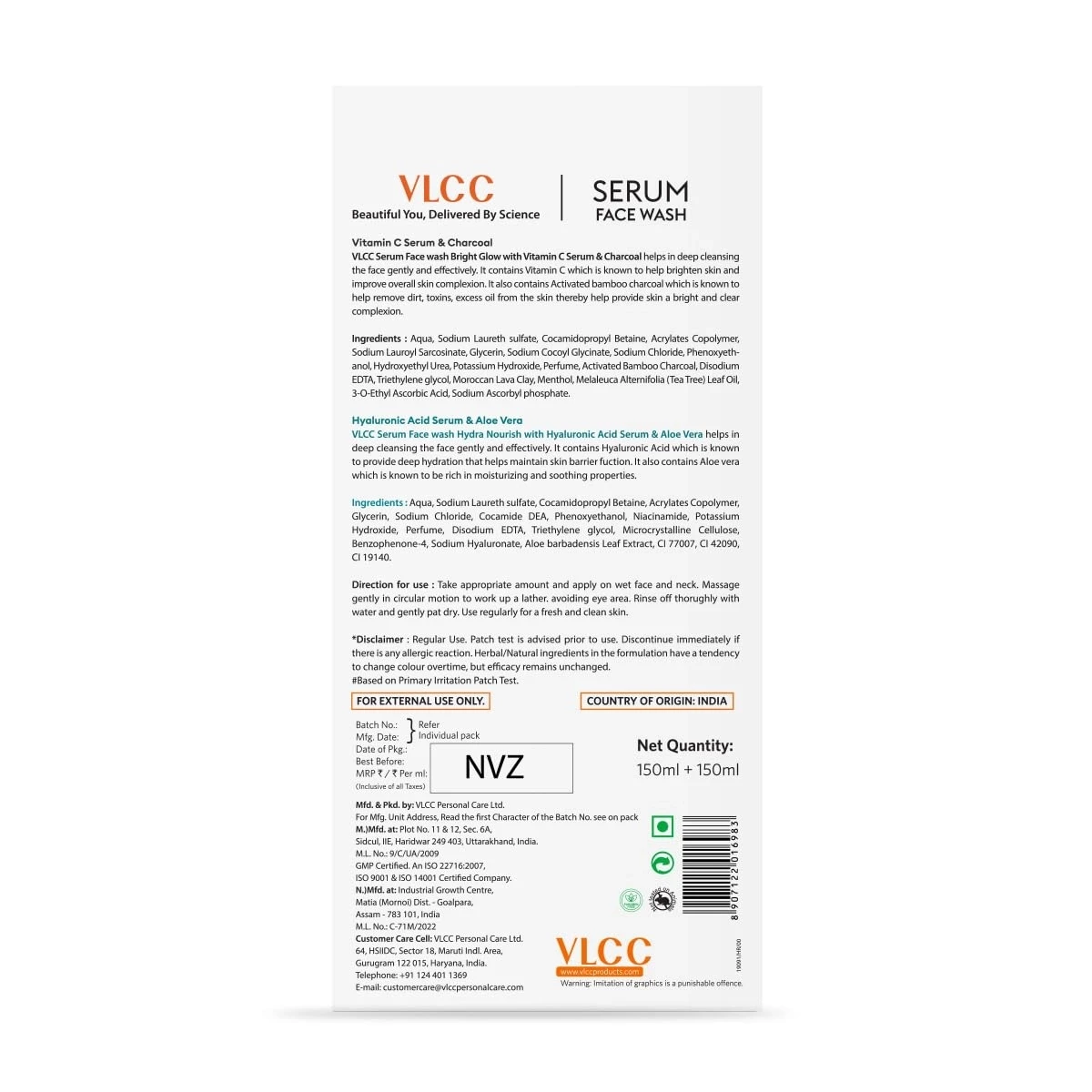 VLCC Serum Face Wash Charcoal & Aloe Vera Combo is enriched with the purifying power of Activated Charcoal and the soothing care of Aloe Vera. This unique serum-based formula gently removes dirt, oil, and toxins from deep within pores while keeping skin hydrated and refreshed. Ideal for daily use, it helps detoxify the skin, control excess sebum, and maintain a clear, healthy-looking complexion.